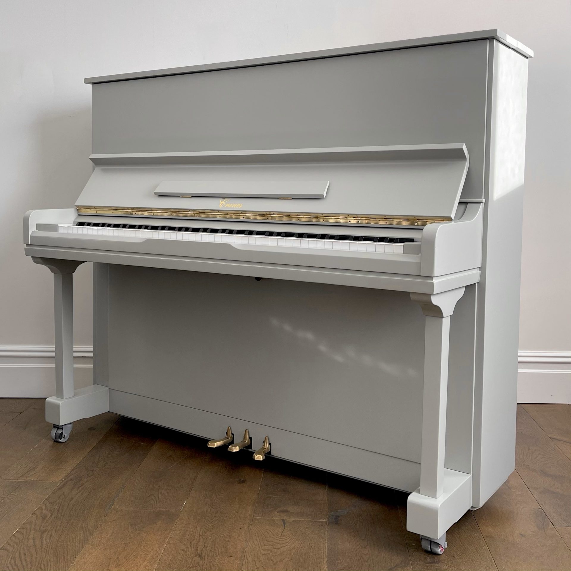 This Cranes upright piano with a tall cabinet features a bright tone that is resonant with chiming bass notes. It has a medium action that is responsive and easy to play making it suitable for beginner to intermediate players. Its finish of Farrow and Ball’s ‘Lamp Room Grey’ would fit in perfectly with the furnishings of any modern household.