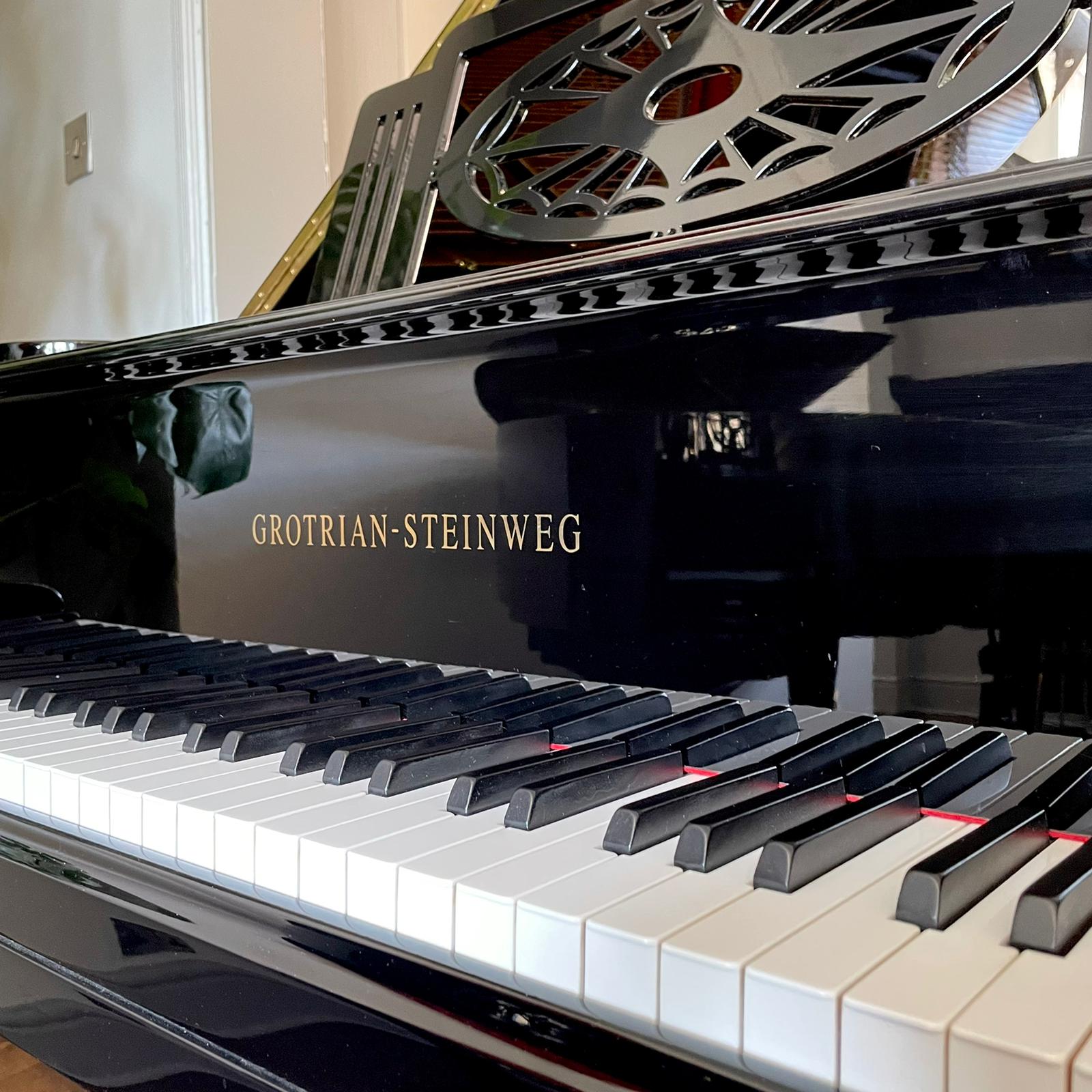 This beautiful Grotrian-Steinweg grand piano has been fully restored including a restring and new natural felt ‘Abel’ hammers. The case has been finished in black polyester producing a high-gloss finish.