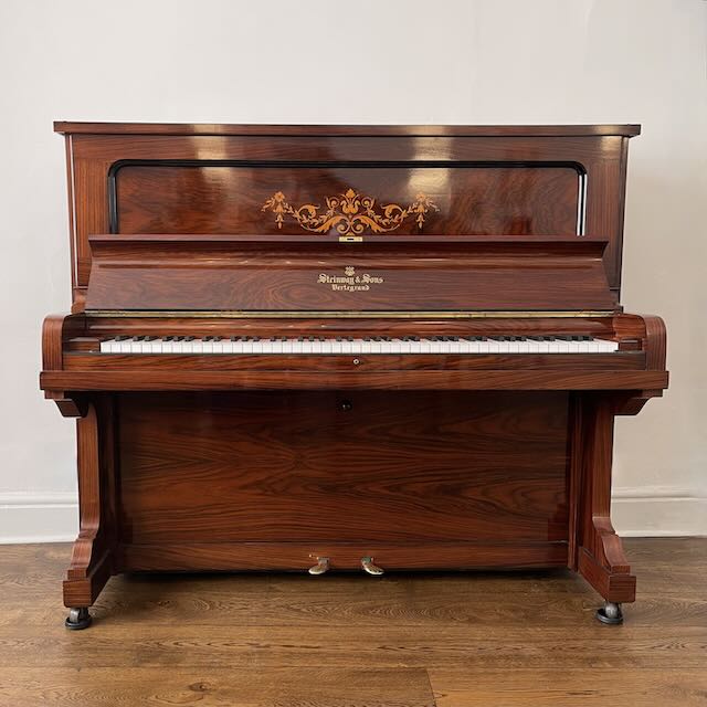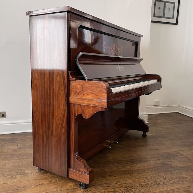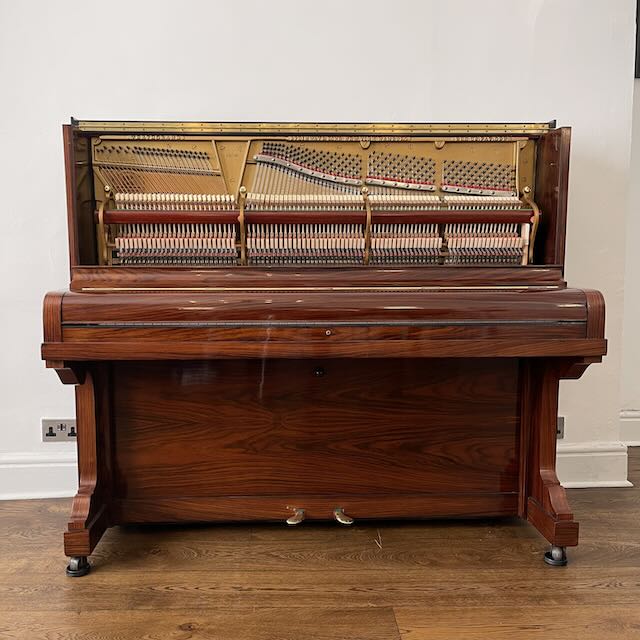 This beautifully restored 1907 Steinway upright piano is a fine example of craftsmanship, combining historic character with refined musical performance. The piano has been traditionally french polished giving the cabinet a deep, elegant finish that enhances the natural grain of the wood.